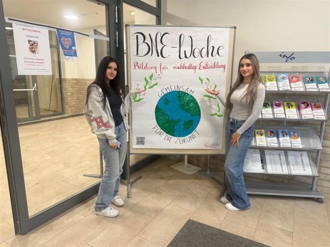 Vom 4. bis 7. November 2025 fand die zweite BNE-Woche an unserer Schule statt, in der die „Bildung für nachhaltige Entwicklung“ (BNE) im Fokus stand. Klassen aus allen Fachbereichen arbeiteten im Vorfeld an Nachhaltigkeitsthemen und präsentierten ihre Ergebnisse in der Projektwoche der Schulöffentlichkeit.