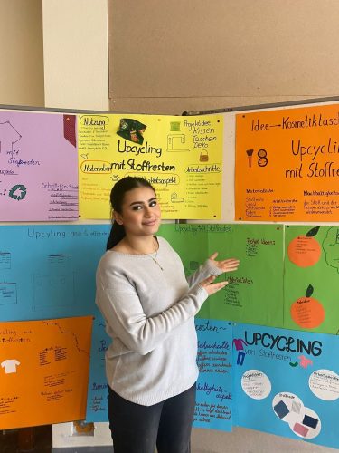 Andere Klassen erläuterten das Pfandsystem von Dosen oder die vier Prinzipien der Umweltpolitik. Dem Thema „Upcycling“ widmeten sich weitere Klassen: Die Schülerinnen und Schüler lieferten kreative Ideen, wie beispielsweise aus Stoffresten Kulturbeutel oder aus Tetrapackungen Blumenvasen hergestellt werden können.