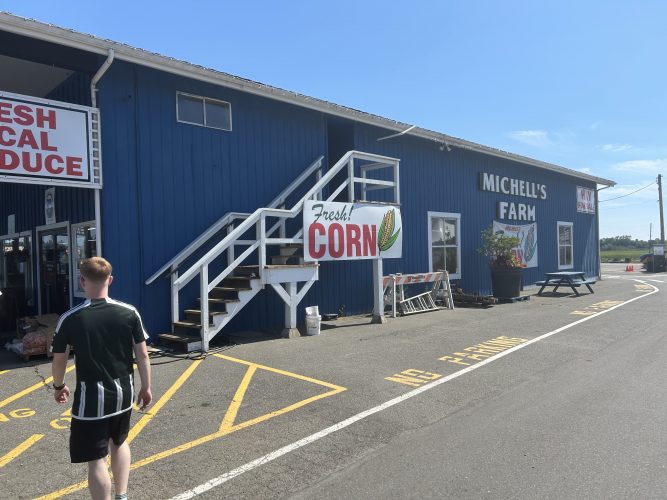 Tag 2 des Kanada-Abenteuers begann früh am Morgen von Vancouver aus. Mit dem Bus ging es für die Vechtaer zunächst nach Vancouver Island, wo sie die Fähre nach Victoria nahmen. Auf dem Weg dorthin machten die angehenden staatlich geprüften Betriebswirtinnen und -wirte einen spontanen Stopp auf einer beachtlichen Farm, die von einem sehr sympathischen Landwirt betrieben wird. Er beschäftigt 95 Mitarbeiter, darunter 85 Saisonkräfte, und produziert nicht nur Gemüse, sondern auch Milch, die er direkt an der Straße vermarktet. Besonders spannend für die Fachschülerinnen und -schüler war die moderne Tröpfchenbewässerung, die auf der Farm eingesetzt wird.