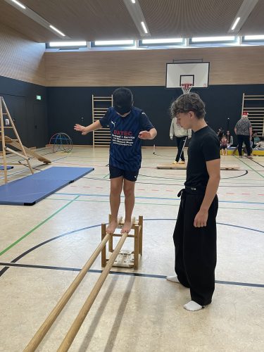 -schüler, den Kindern genügend Zeit zu geben, die Hindernisse im Parcours ohne Hilfe auszuprobieren und Problemlösungen selbst zu finden. Die angehenden Sozialassistentinnen und Sozialassistenten lernten, sich zurückzunehmen und aus einer beobachtenden Rolle heraus das Selbstbewusstsein und Selbstlernen der Kinder zu fördern. Neben dem Parcours erarbeiteten die Berufsfachschülerinnen und