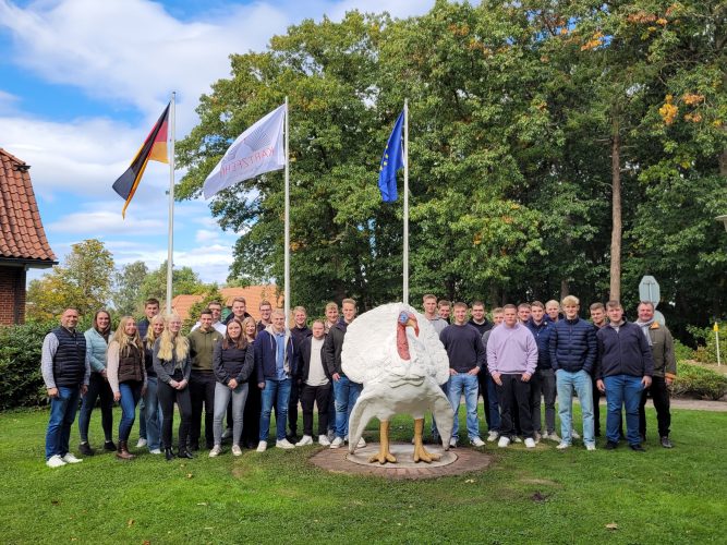 Am Freitagnachmittag, den 26.09.2025, besuchten die Schülerinnen und Schüler der Klasse 1-1 der Fachschule Agrarwirtschaft die Moorgut Kartzfehn Turkey Breeder GmbH in Bösel. Dabei wurden sie von Fachlehrerin Eva Hoffbauer und Klassenlehrer Detlef Breuer begleitet. Das Moorgut Kartzfehn ist der größte unabhängige Putenvermehrungsbetrieb in Europa.